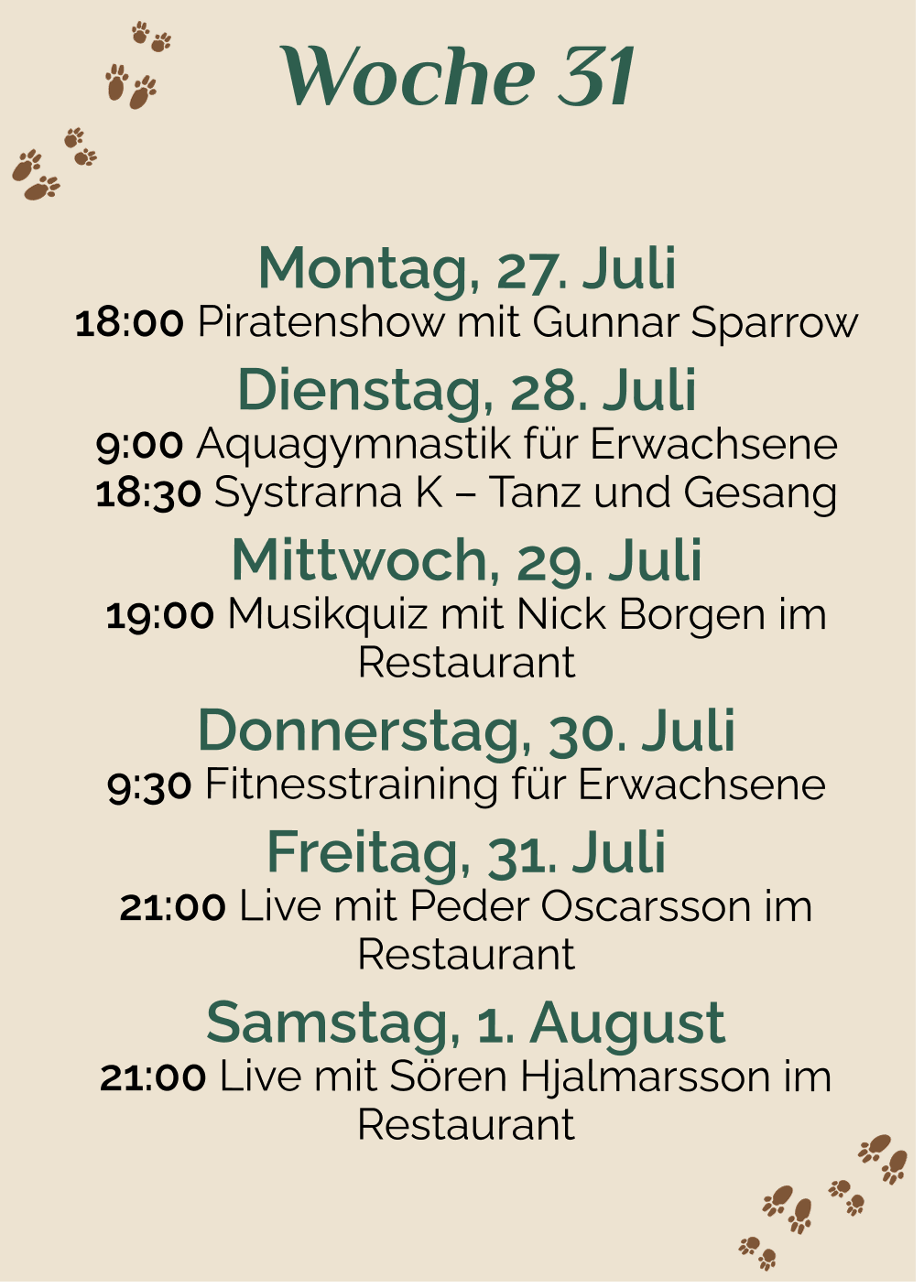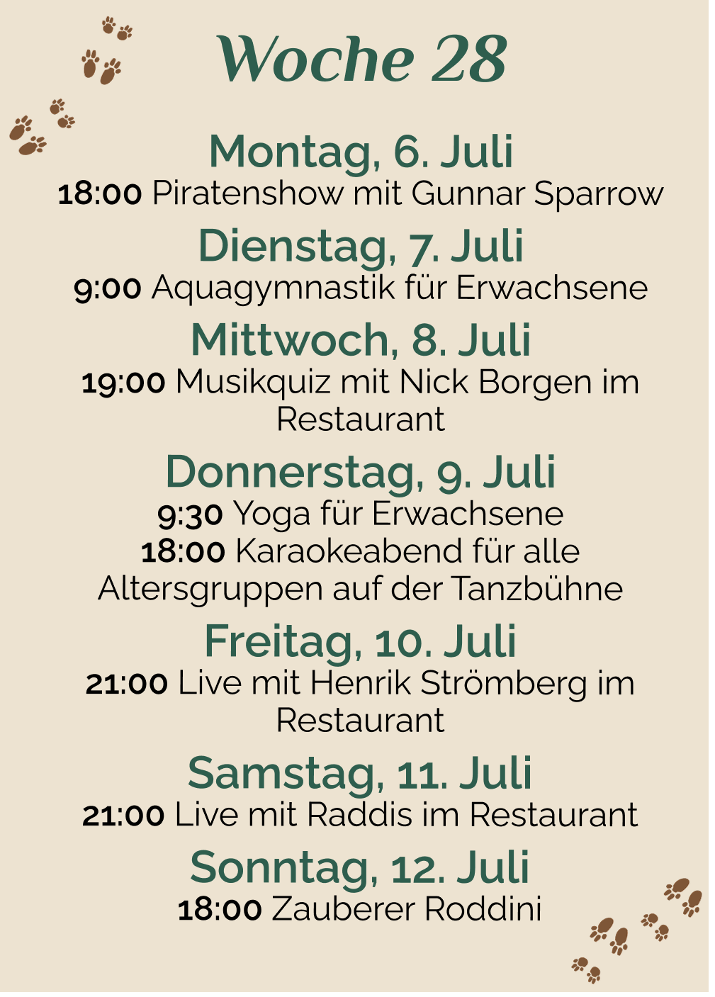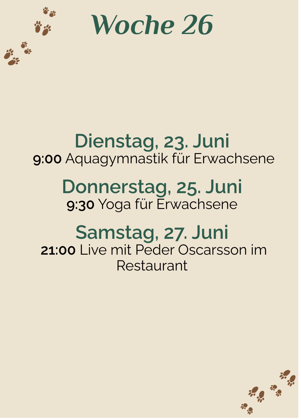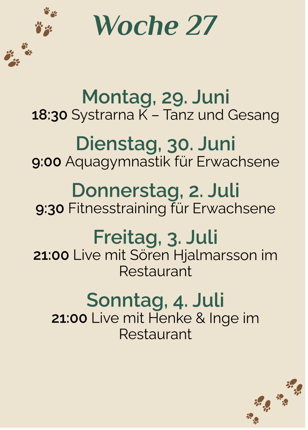 Diesen Sommer werden wir von Satnamyoga by Ulrika besucht, die Yoga, Wassergymnastik und Zirkeltraining auf dem Campingplatz anbietet – Woche 26 bis 32. Alle sind…