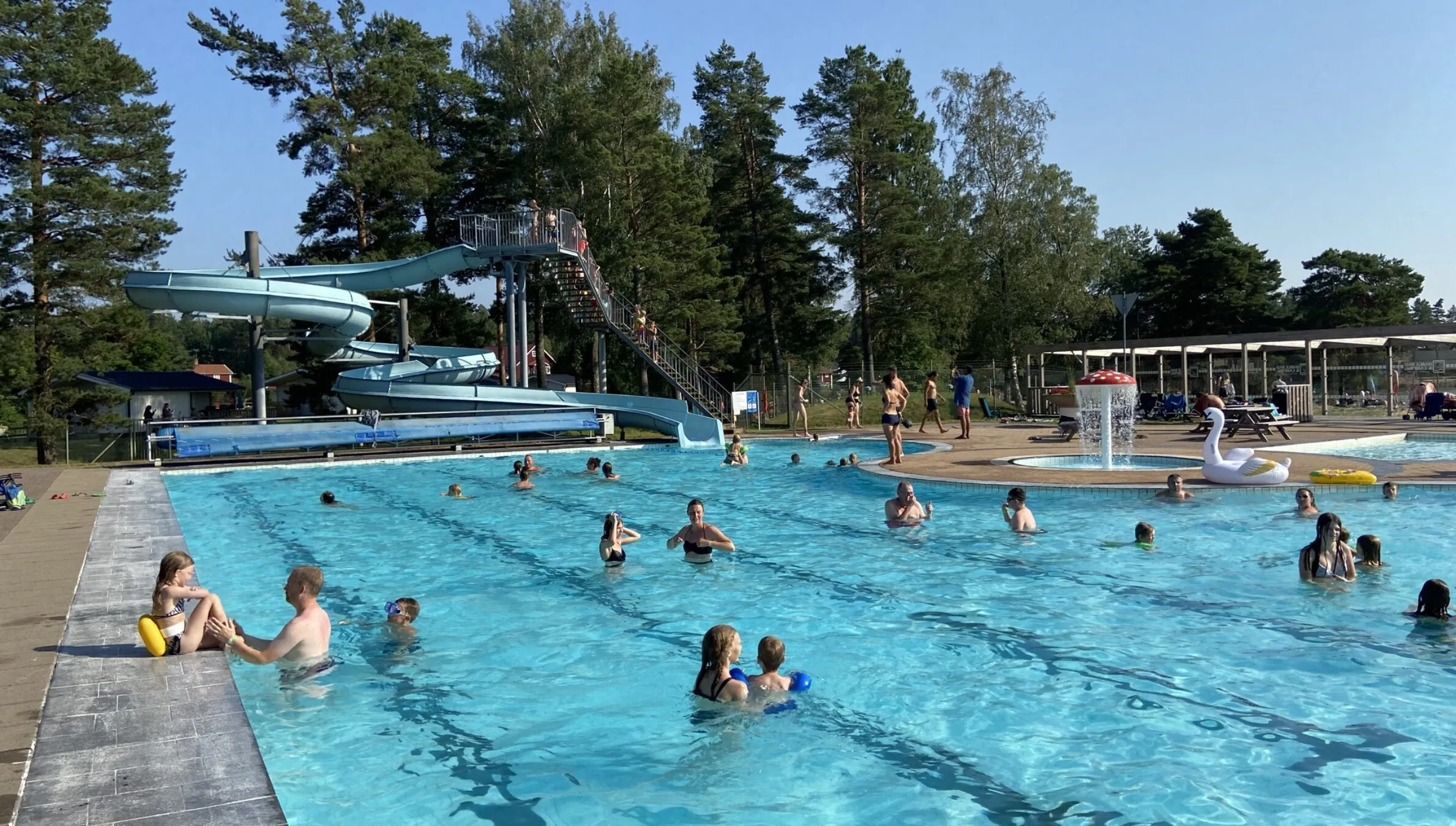 Welcome to our campsite with a heated pool, an ideal spot for families looking to enjoy a comfortable and fun vacation in southern Sweden. Our pool area offers something for everyone, from a large heated pool and water slide to a children’s pool and sauna facilities. Here, you can relax and have fun, regardless of the weather.