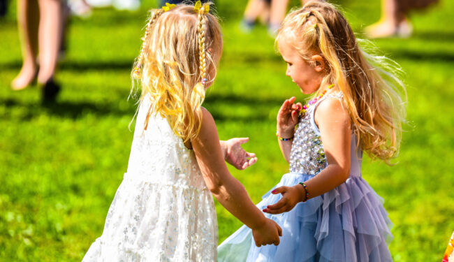 – Vi plockar blommor till midsommarstången